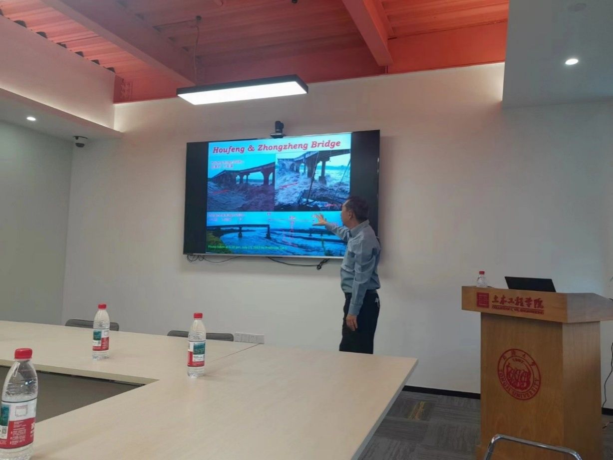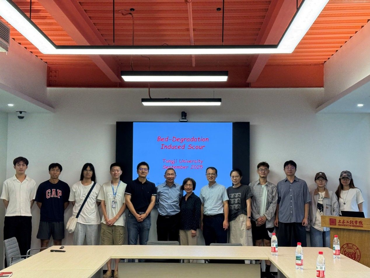 2025年9月18日上午,应同济大学土木工程学院水利工程系邀请,在同济大学重点外专引智项目支持下,国际著名泥沙动力学家、南洋理工大学Chiew Yee-Meng(赵以明)教授(已退休)在同济大学土木大楼B605作了主题为“Effect of Bed Degradation Induced Scour on Bridge Failure”的学术讲座。本次学术讲座由水利系曹德平研究员主持,吸引了土木学院水利系和地下系多位师生参加。